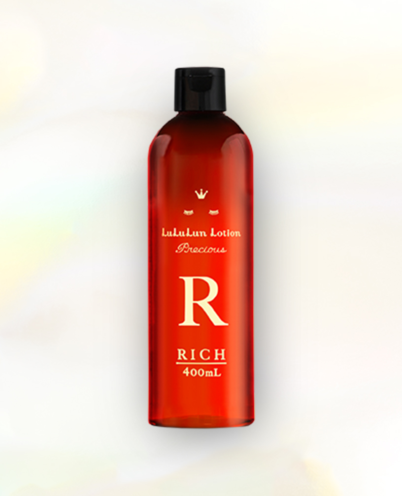 大人肌のためのルルルン ローション リッチは、他の2アイテムに比べてやや少なめの400mLボトルを採用しています。その理由は、肌密度を上げるための成分をギュギュッと詰めこんだから。厳選配合したこだわりの成分を、効率よく肌に届けます。