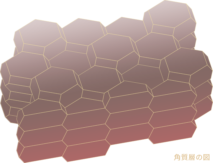 肌細胞は、空間を埋めるために最も効率的な形をしています。ケルビン14面体と呼ばれる、多面体。これが互いにすき間なく、高い密度で組み合わせられることによって、丈夫な肌バリアを保ち、健やかな状態をキープすることができます。