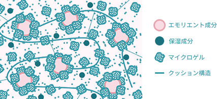 ぷるぷる&ふわっとかるいマイクロゲルがスーッとのびて肌に密着。マイクロゲルで包んでいたエモリエント成分が肌をしっかりとラッピングしてくれます。