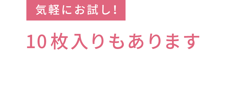まずは気軽にはじめてみてほしいから、10枚入りもラインナップしました。持ち運びに便利なパウチ&チャックタイプなので、ご旅行のお供にもぴったり!別の色も揃えてその日の気分や肌悩みによって使い分けるのもおすすめです。