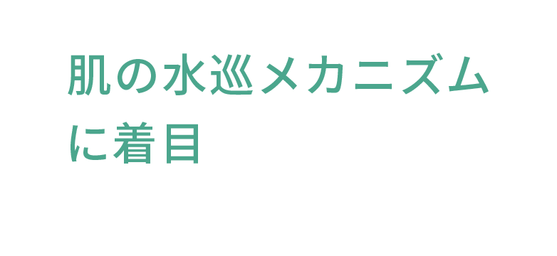 体内の水分は浸透圧によってすみずみにまで広がるのをご存知ですか。これが水巡メカニズム。水巡メカニズムが崩れた肌はケアを続けているのに乾燥悩みがなくならないという問題を抱えることも。大切なのは、ただ水分を入れるだけじゃなく、キープするための土台*1を整えることです。「白茅根エキス*2」は砂漠を生き抜く保水力を応用して、角層のすみずみにうるおいを巡らせます。肌の水巡メカニズムに着目した「サンシキスミレエキス*3」は、うるおい満ちる*4肌へ整えて、頬がぷっくり光を反射するような、みずみずしい素肌に導きます。