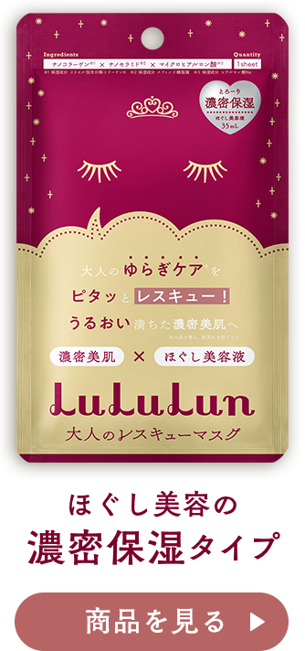ルルルン史上最大量、35mLの美容液を贅沢に配合しました。お肌へたっぷり浸透*させたあとの余った美容液は、手、デコルテ、首など、全身のボディケアにも使えちゃう!※ 当社従来品比  * 角質層まで