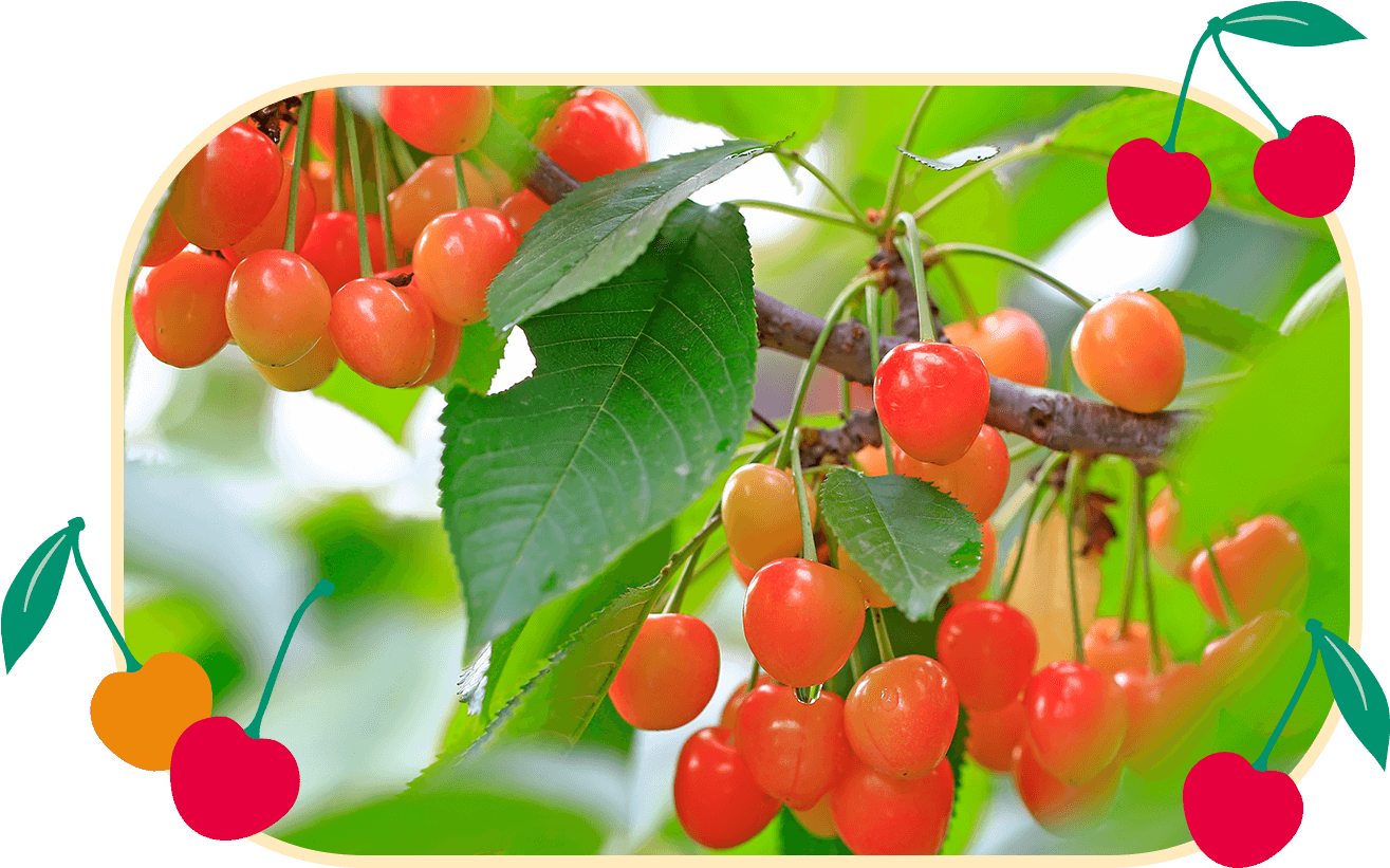 さくらんぼ、りんご、ラ・フランスなど、