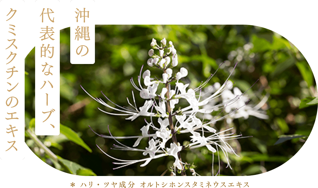 沖縄三大野草の一つとして知られるクミスクチン。ロスマリン酸やルテオリンを含んだ美肌成分で、お肌へ明るいハリを生み出します。