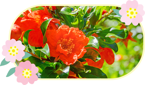 ザクロといって想像するのは、ルビーのような果実。でもじつは、その花にも肌に嬉しいヒミツがあるんです。「優美な美しさ」の花言葉を持つザクロの花が、肌をやわらかく整えて、みずみずしいハリツヤをもたらします。