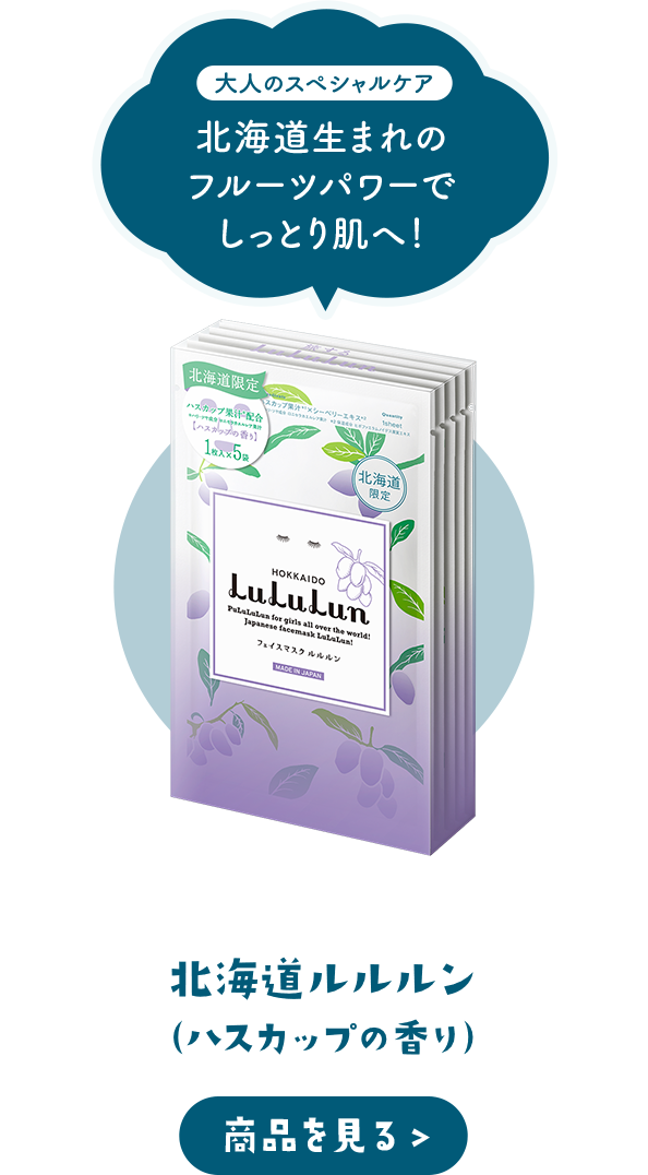 北海道で親しまれる、甘酸っぱいハスカップ。古くから愛されているその果実からとれたエキス*1が、肌のすみずみにまでうるおいを与え*2、ハリ・ツヤを引き出します。