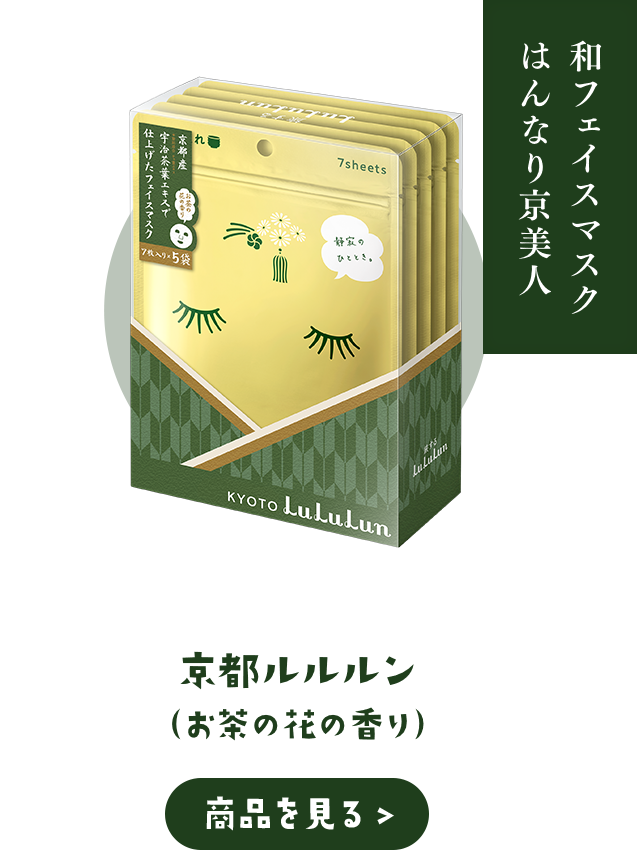 お肌をなめらかに整える京都産の宇治茶葉エキスを配合しました。はんなり美肌に想いを馳せてみて。